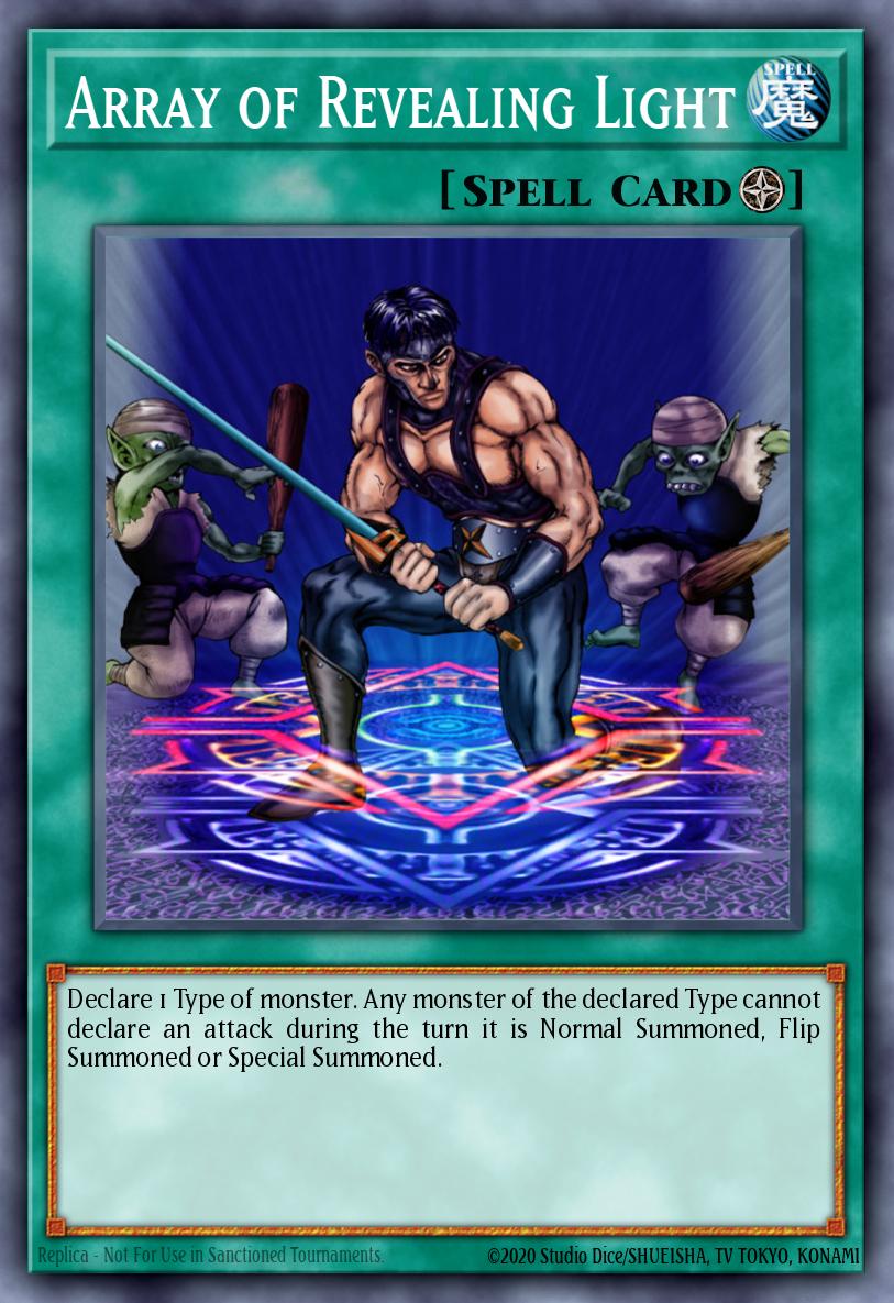 Declare 1 Type of monster. Any monster of the declared Type cannot declare an attack during the turn it is Normal Summoned, Flip Summoned or Special Summoned.