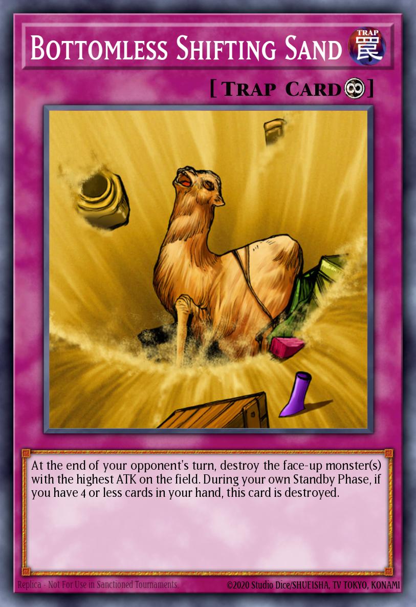 If more than one monster ties for highest ATK value in the End Phase while โBottomless Shifting Sandโ is active, all of those monsters will be destroyed by the effect of โBottomless Shifting Sand.โ