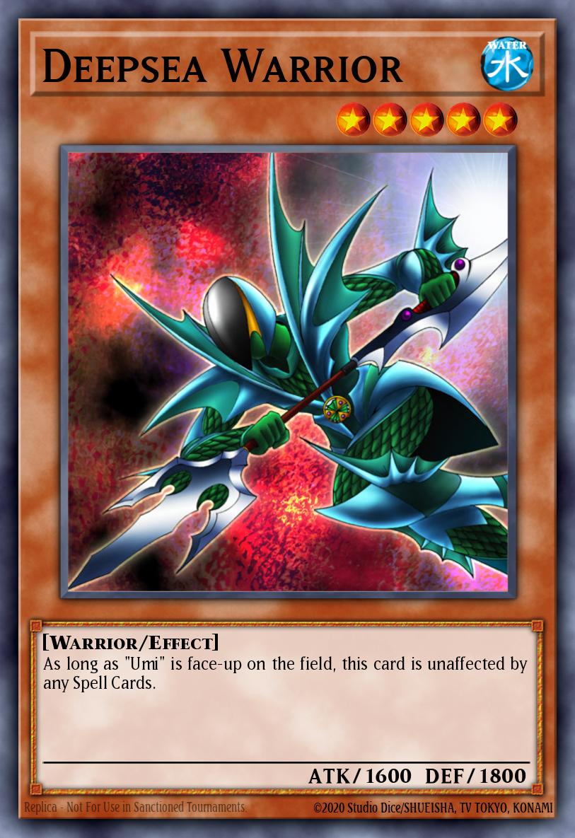“Deepsea Warrior” does not gain any ATK or DEF bonuses from the effect of “Umi.”