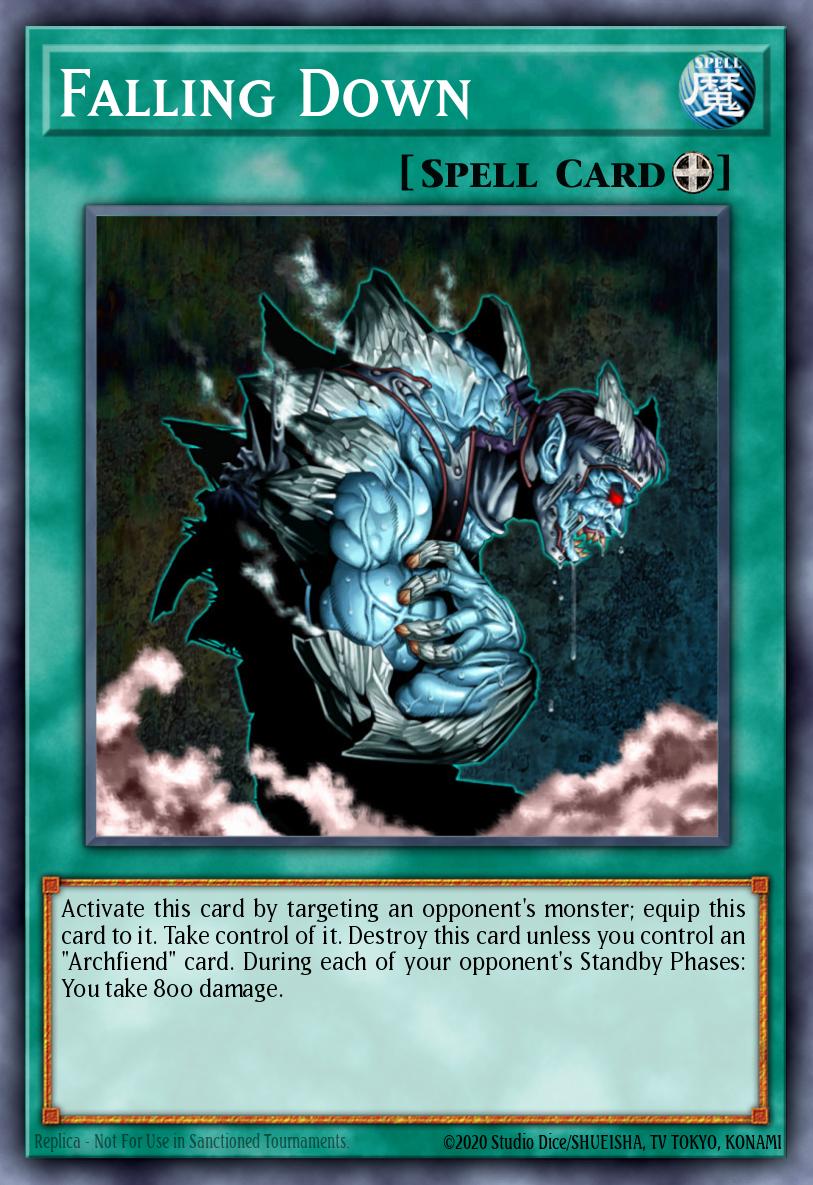 If “Falling Down” takes control of an Archfi end monster, and the controlling player's only other Archfiend card is removed from the field, “Falling Down” is not destroyed by its effect.