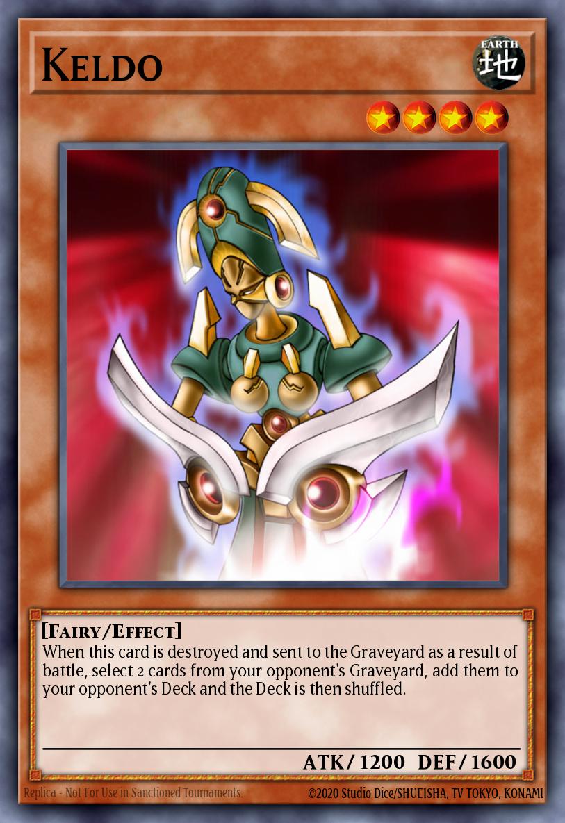 When this card is destroyed and sent to the Graveyard as a result of battle, select 2 cards from your opponent's Graveyard, add them to your opponent's Deck and the Deck is then shuffled.