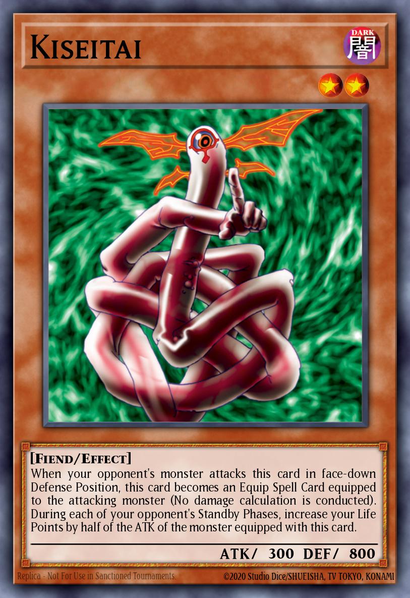When your opponent's monster attacks this card in face-down Defense Position, this card becomes an Equip Spell Card equipped to the attacking monster (No damage calculation is conducted). During each of your opponent's Standby Phases, increase your Life Points by half of the ATK of the monster equipped with this card.