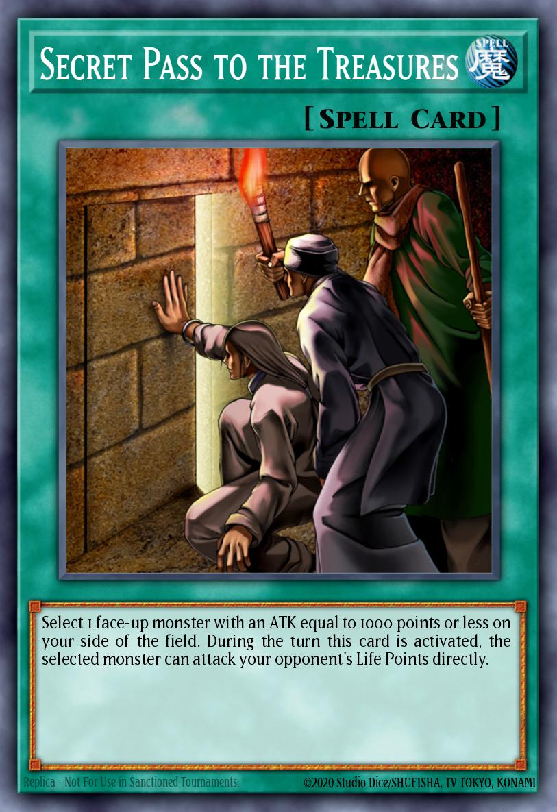 If the monster attacks your opponent's Life Points directly, you cannot use an effect such as "Rush Recklessly" to increase its ATK above 1000 during the attack. If a monster attacks directly using the effect of "Secret Pass to the Treasures", "automatic" increases will not apply ("Super Robolady", etc.). If you use "Secret Pass to the Treasures" on "Injection Fairy Lily", and attack directly, you cannot activate the effect of "Injection Fairy Lily".