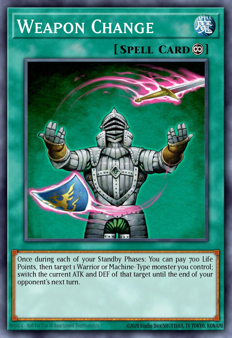 Once during each of your Standby Phases: You can pay 700 Life Points, then target 1 Warrior or Machine-Type monster you control; switch the current ATK and DEF of that target until the end of your opponent's next turn.